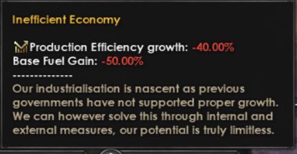 - 私たちはこの2つの考え方を別のブランチで表現している。一方を選んだからと言ってそのブランチにゲーム終了まで固定されるわけではなく、ブランチの最後の国家方針完了まで一時的に固定される。どちらを選択しても対処すべき問題は2つのブランチの間のブランチで、組織構造の問題に対処できる。