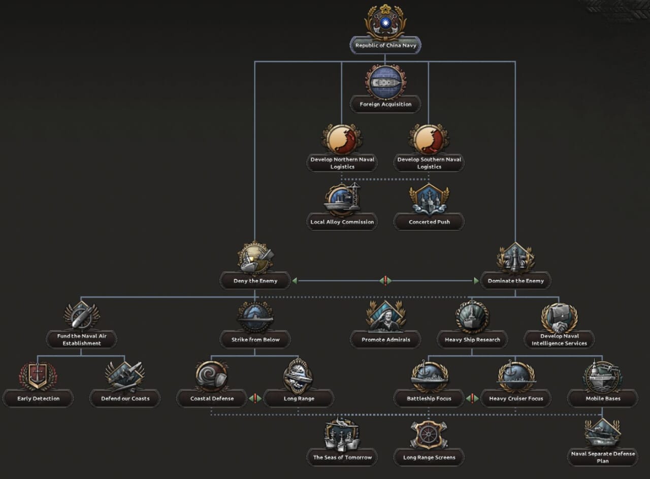 - 中華民国海軍でプレイヤーが選べる選択肢は、海洋支配を目指すか、それとも敵の制海権獲得を阻止するかだ。敵が勝利しなければそれで十分な場合もある。艦隊を迅速に強化するためのボーナスも追加し、他の大国に追い付くことができる。提督もいる。