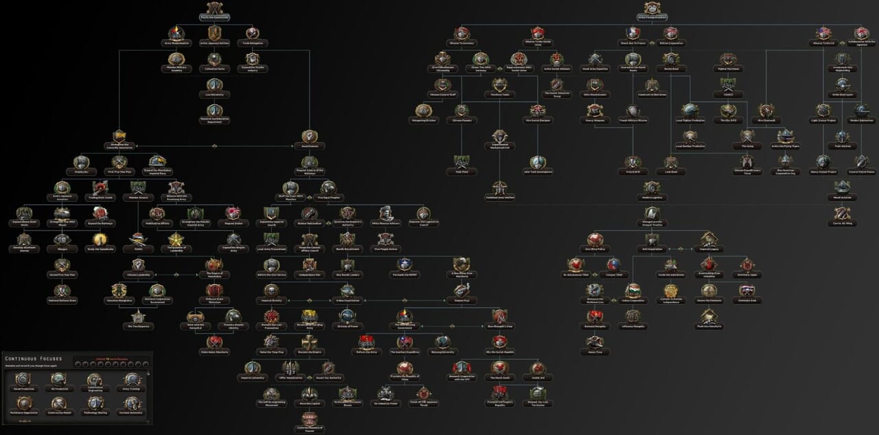 - 国家方針ツリーの全体像はこのとおり。以下は軍閥についての最新情報だ。