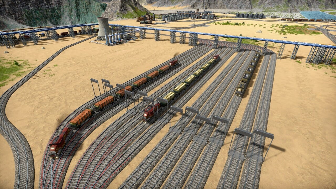 - 電動車と電化線路:現実世界と同様に、電動車はインフラコストは高くなるものの、運用コストが安く、運行速度も速い。燃料補給が不要で、電力網から直接電力を供給するが、電力供給が止まると電動車も止まる。電化線路は建設コストが高く、電線の設置スペースとして通常の線路より1タイル大きなスペースを要する。鉄道網の大規模な電化をやりやすくする線路電化ツールも追加予定だ。電化の架線によって中型・大型車両が踏切を通行不能になるという問題があったが、私たちは高さ調節が可能な架線を備えた踏切を追加し、あらゆる高さの車両が自由に通行できるようになった。