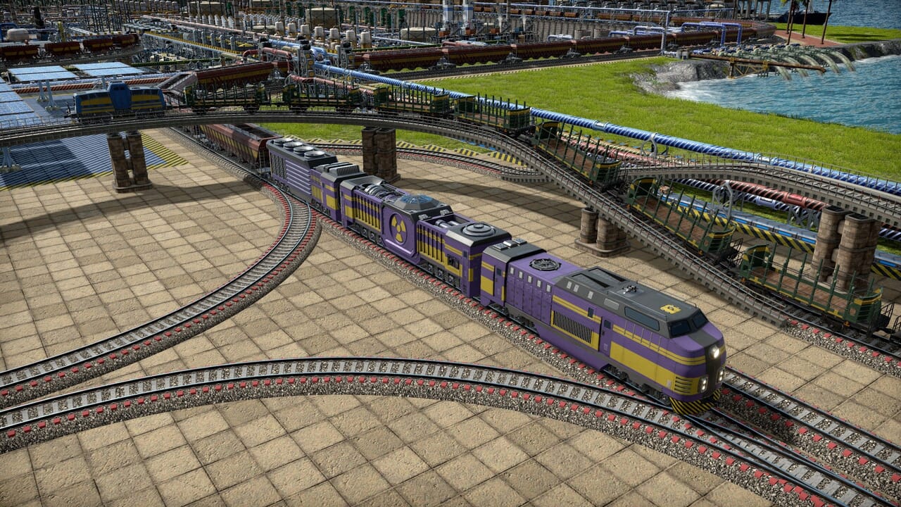 また、鉄道DLCで追加予定の核動力機関車は運転士用車両(ユニットA)、原子炉・タービン車両(ユニットB)、凝縮器車両(ユニットC)の3つで構成され、全体の長さは25タイル(50メートル、第1世代ディーゼル機関車5両分)となるとのこと。