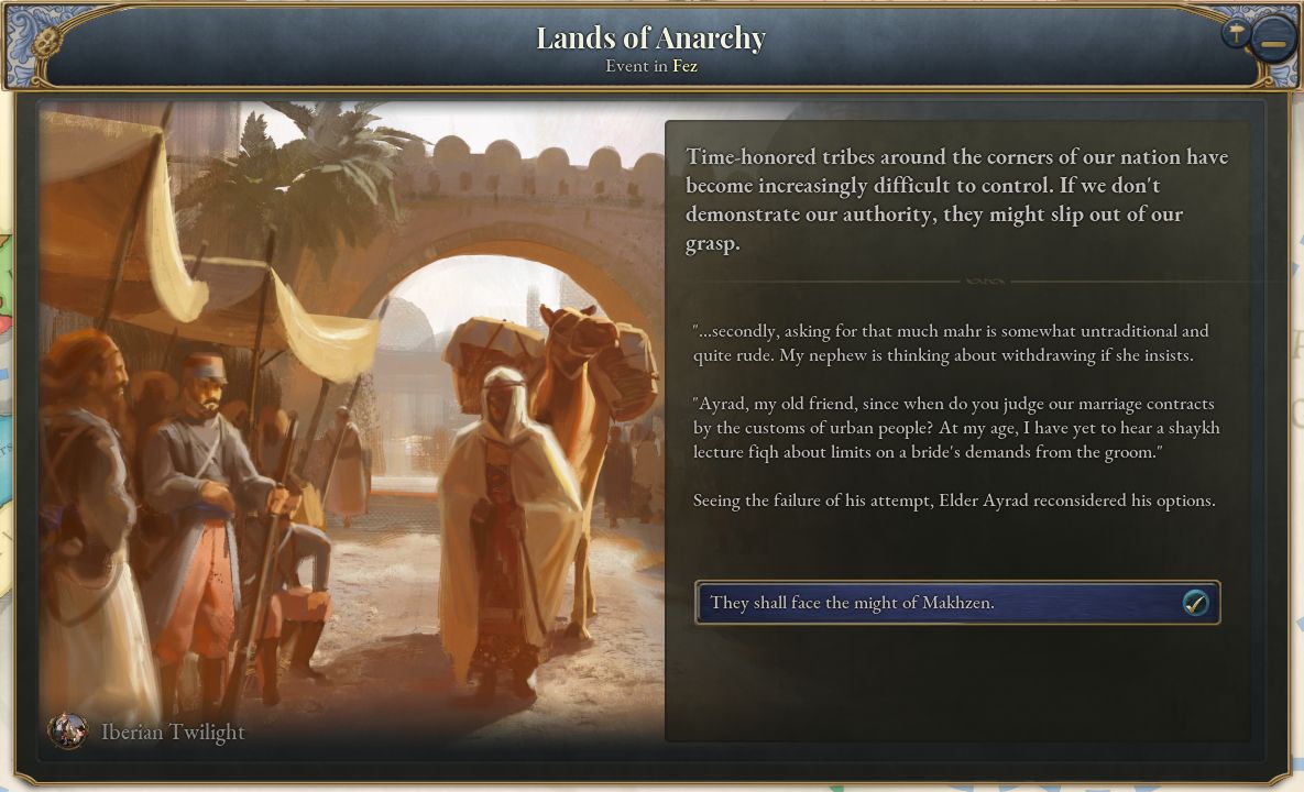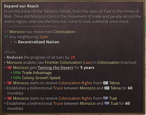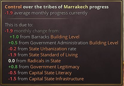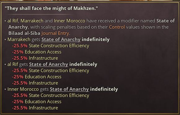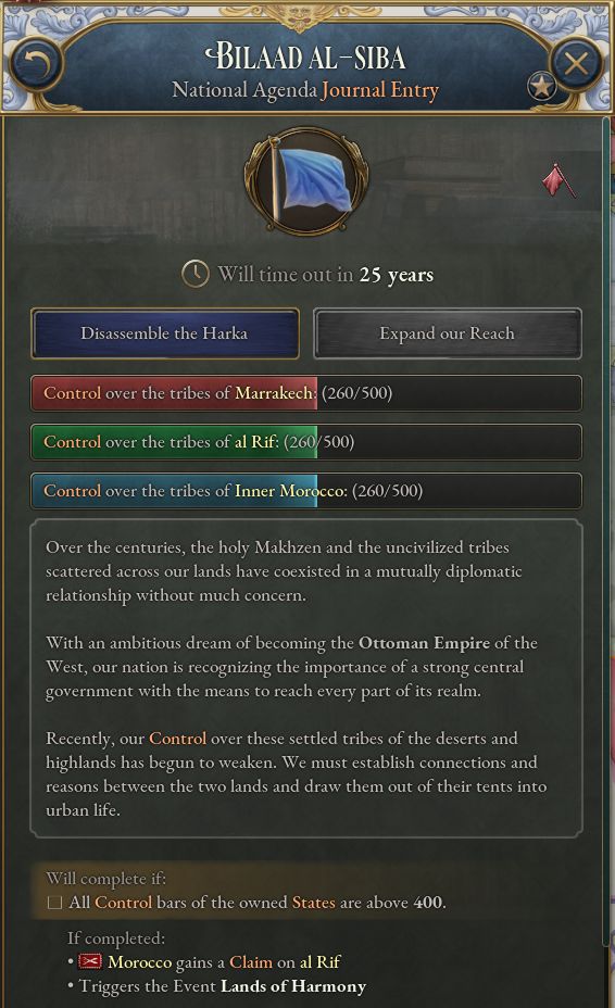 - このジャーナル記事ではモロッコの諸部族に対する支配権を確立することが課題となり、諸部族はステートごとに分けられていてそれぞれ進捗バーがある。