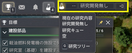 研究室(基礎)が建設された後には「技術『建設』を研究する」という達成条件が出るので、技術「建設」を研究します。