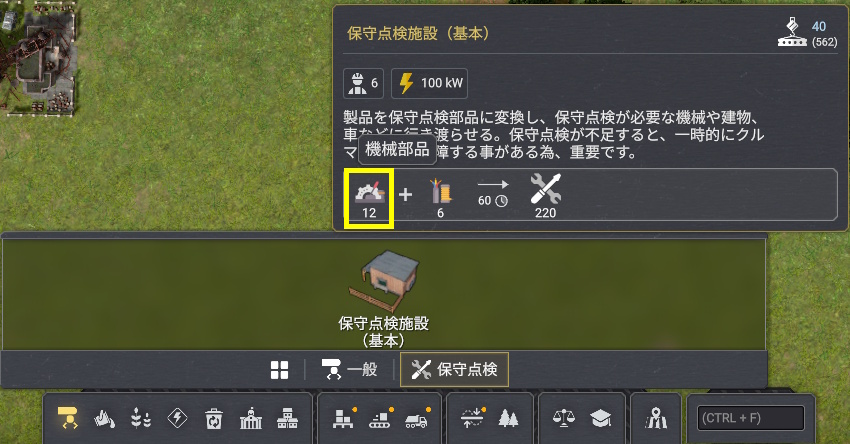 保守点検施設(基本)の左下にあるのは電子部品を生産する組立工場Iですが、これは達成条件には入っていません。