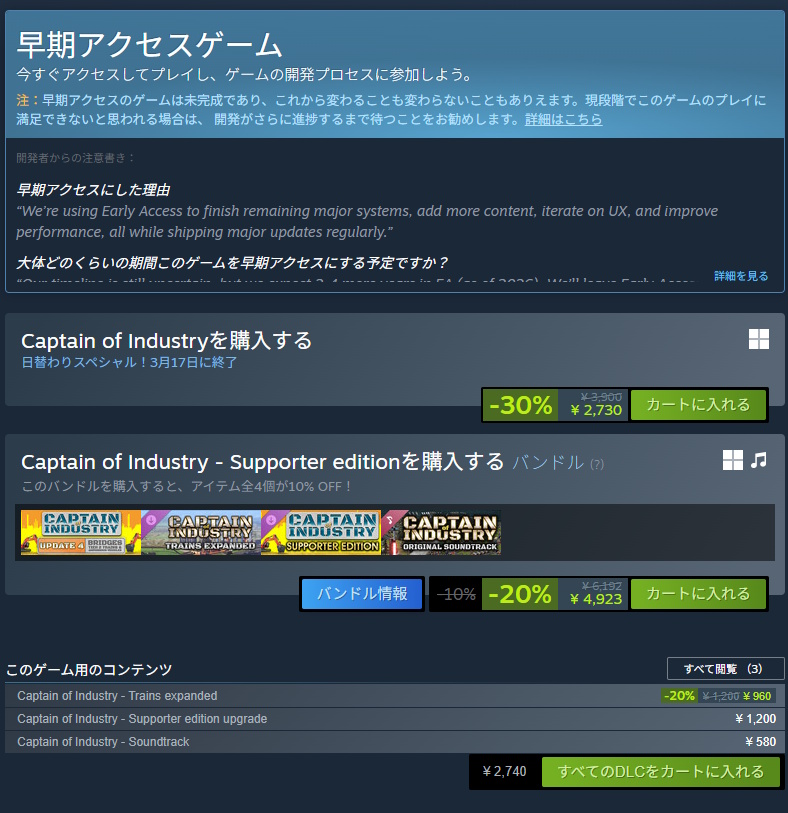 「産業キャプテン (Captain of Industry)」レビュー記事はこちら。