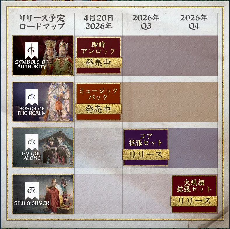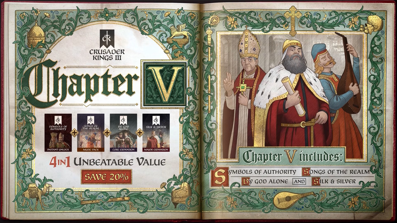 2026年4月20日、「Crusader Kings III」新DLCバンドル「Chapter V」が発売されました。これに含まれるDLC4本も発表されています。