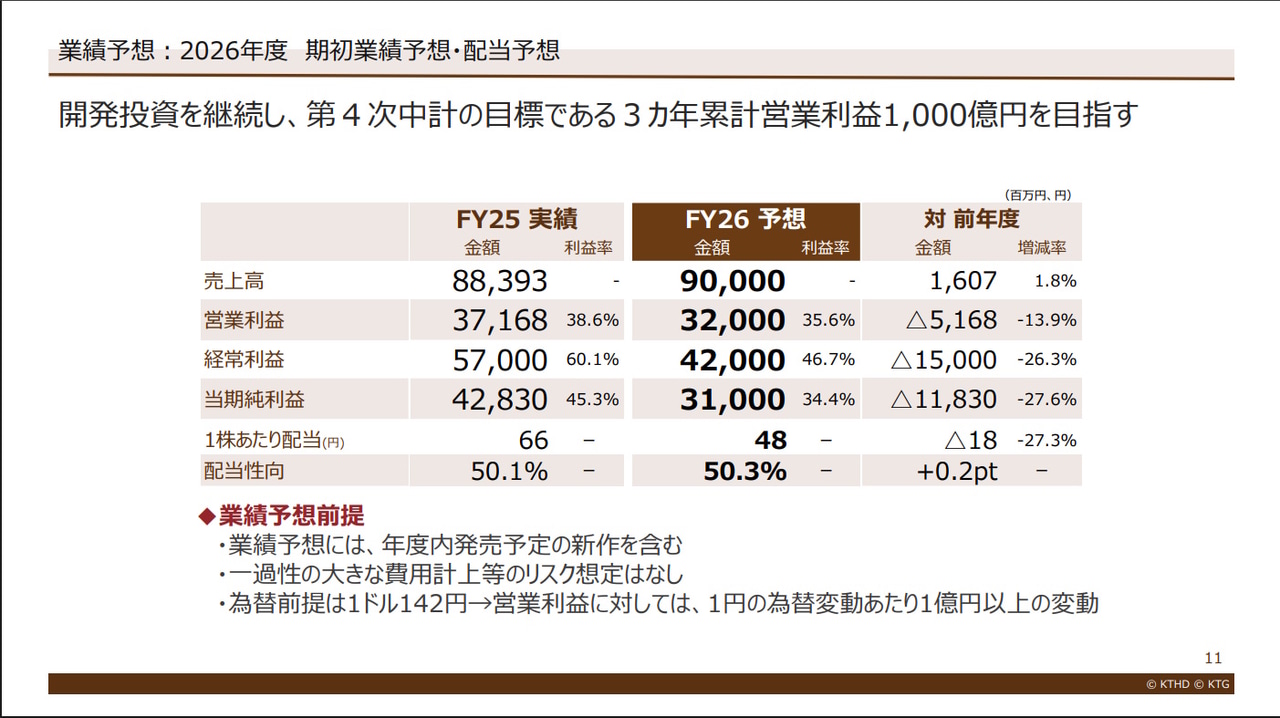 2026年4月27日、コーエーテクモHDが2026年3月期通期決算を発表しました。売上は業績予想未達でしたが、前年度比で増収増益となりました。