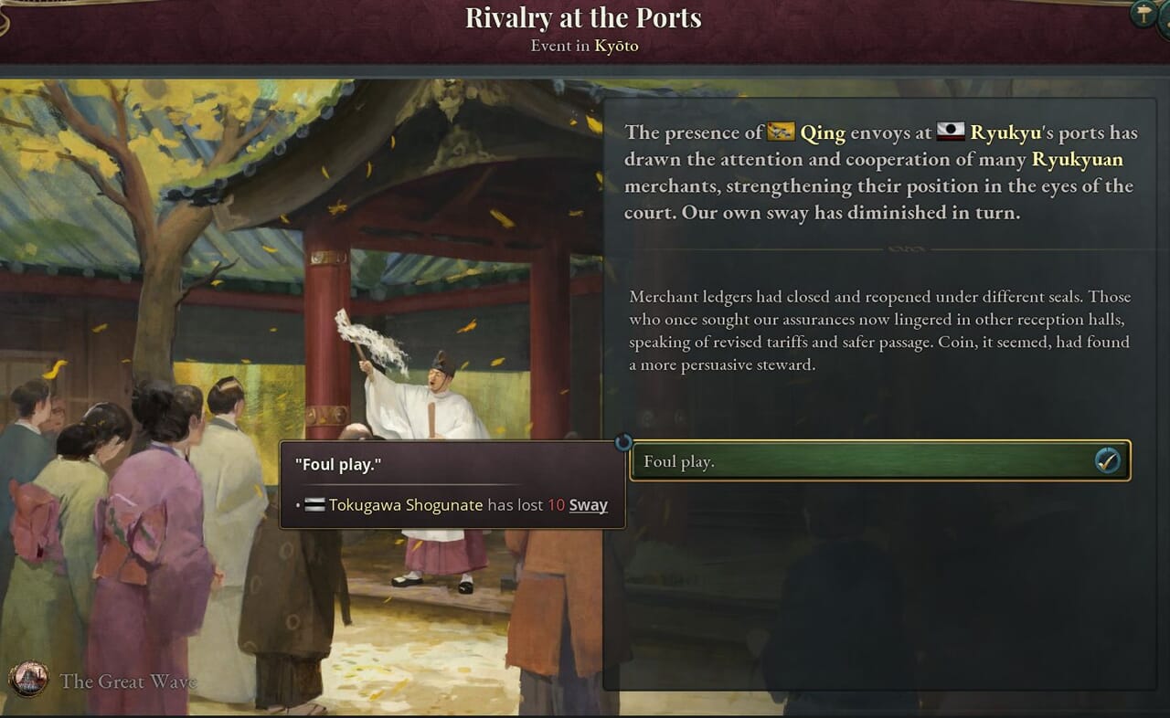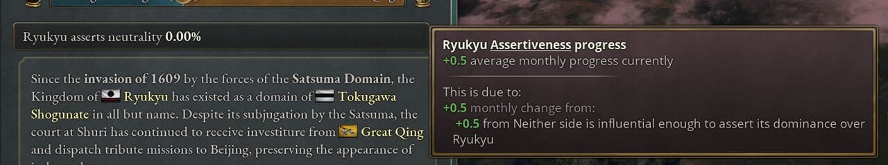 - 琉球にとっては、時間は味方だ。2つの勢力を互いに競わせ、どちらも十分な影響力を獲得できないようにすれば、十分な報酬を得る。